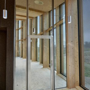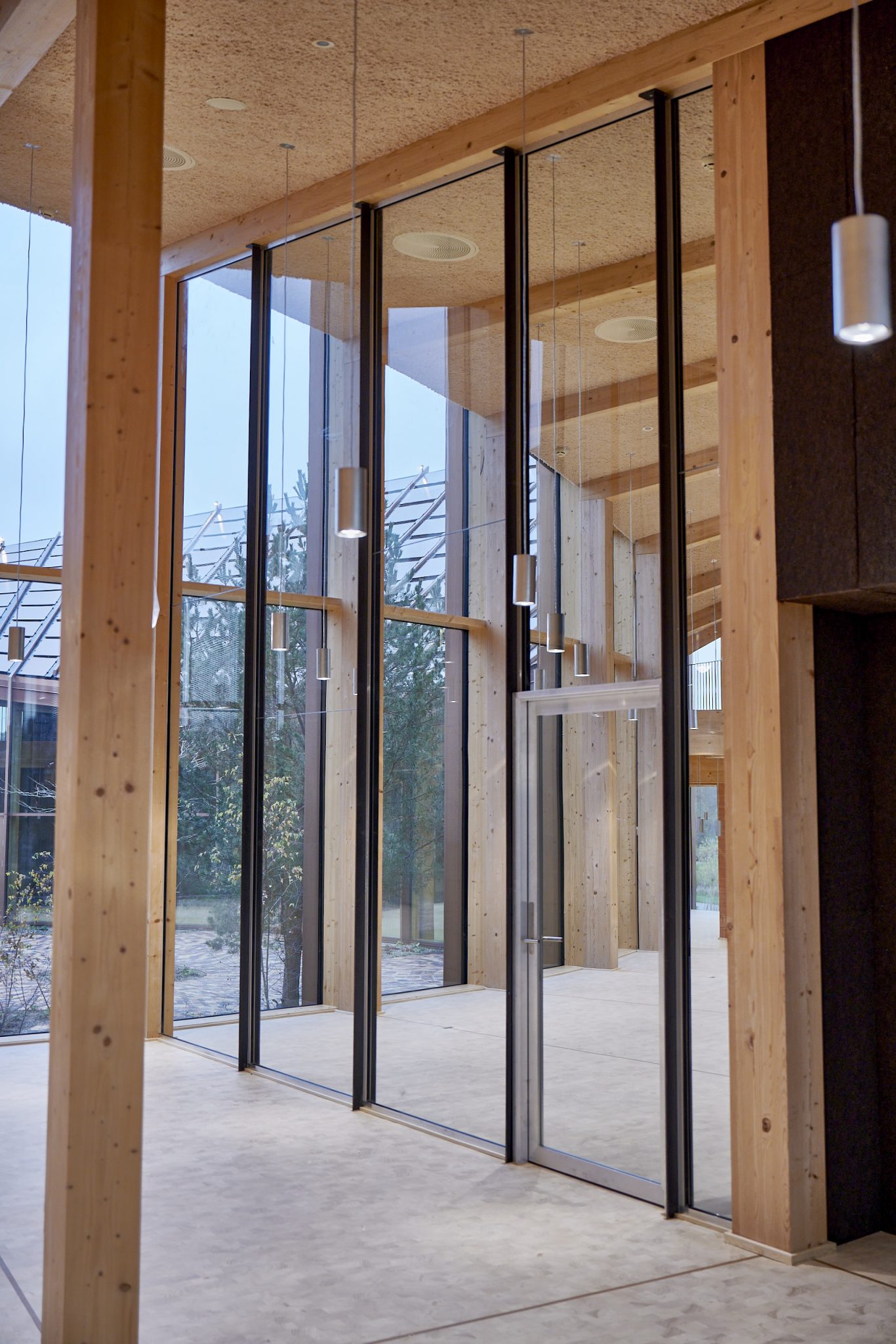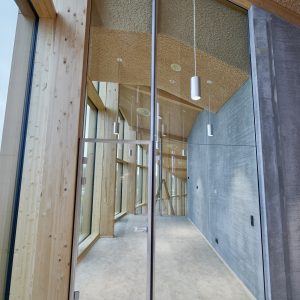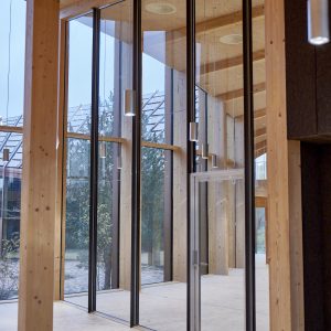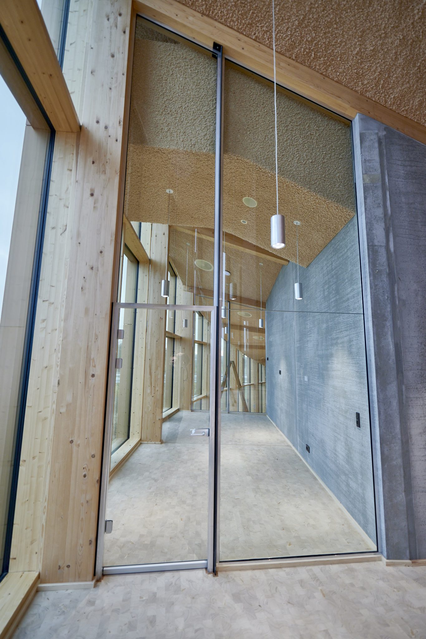 Alle glasvægge er udført med ubehandlet aluminiumsprofiler, som får en helt særlig overflade over tid.