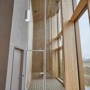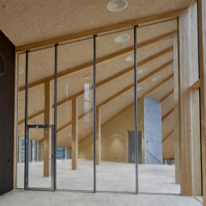 Til det bæredygtige og transparente kontorbyggeri på 2.800 m2, tegnet af BIG – Bjarke Ingels Group, der skal huse Dymaks nye hovedsæde i Odense, har vi leveret og monteret indvendige glasvægge med både lydisolerende egenskaber og brandklassifikationer tilpasset bygningens cirkulære form.